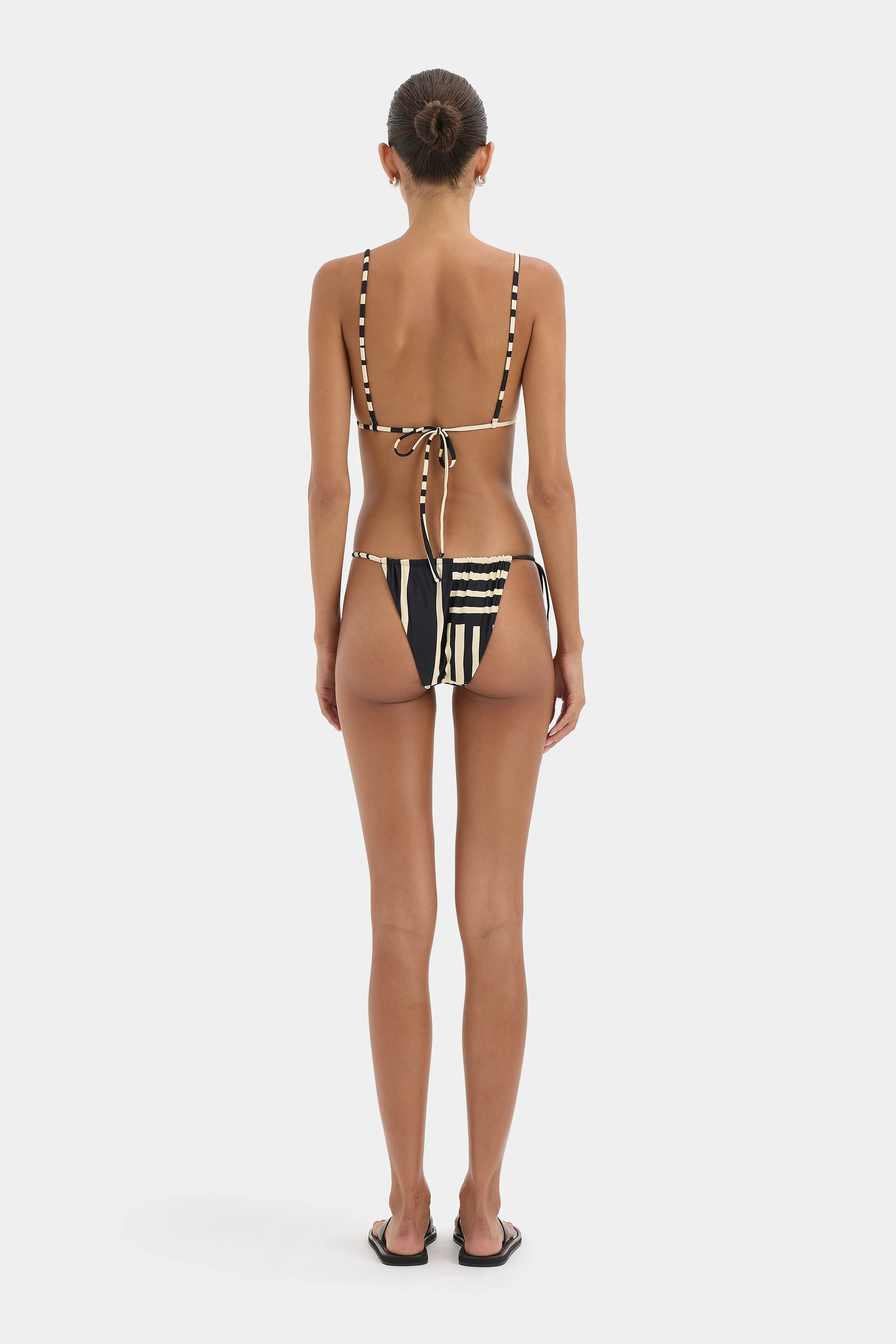 Abstract shapes form our Ligne Print, cast across the lustrous swimwear. Print placements vary on each garment for individuality.