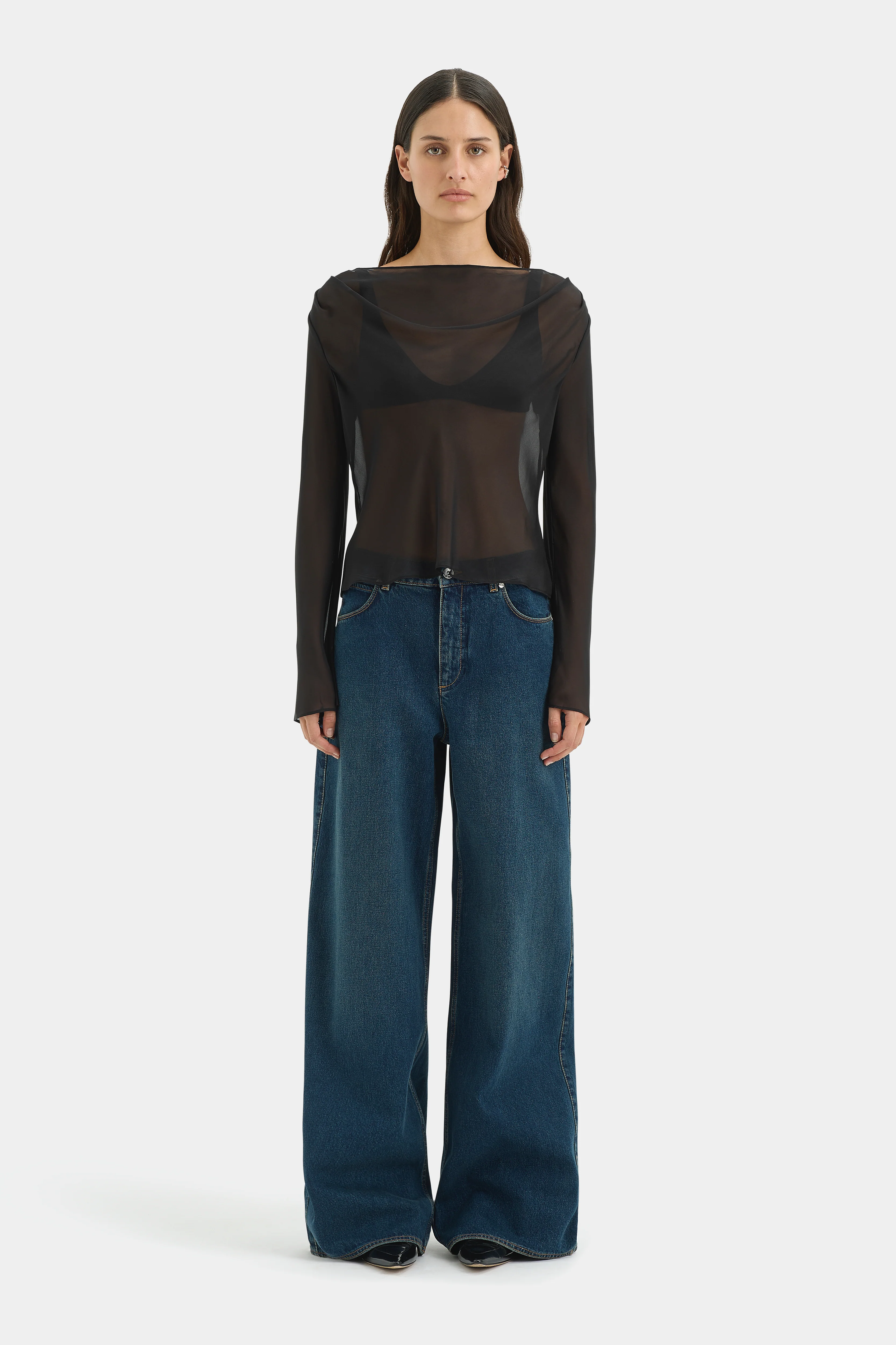 Lightweight semi-sheer silk chiffon fabrication with elegant drape
